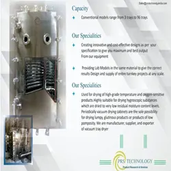 Vacuum Tray Dryer is the most commonly used batch dryer. They are box-shaped and loaded and unloaded via a door (two doors on the larger models).